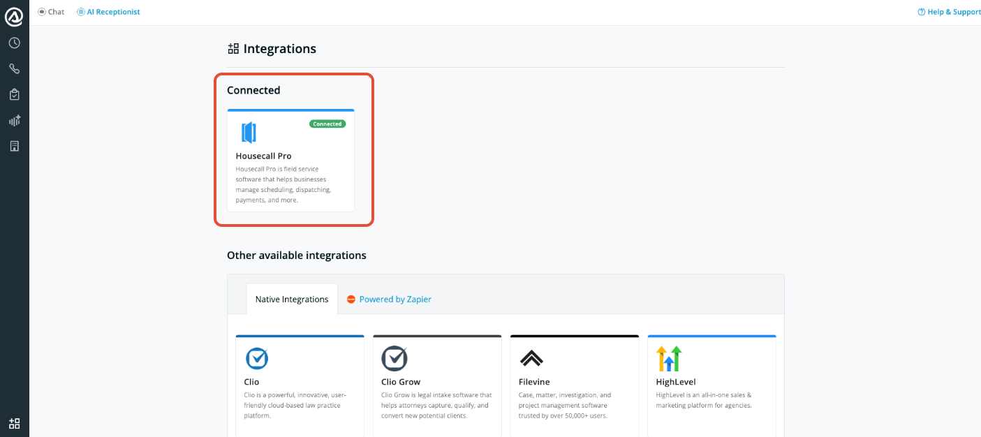 Connect AI Receptionist to your Housecall Pro account
