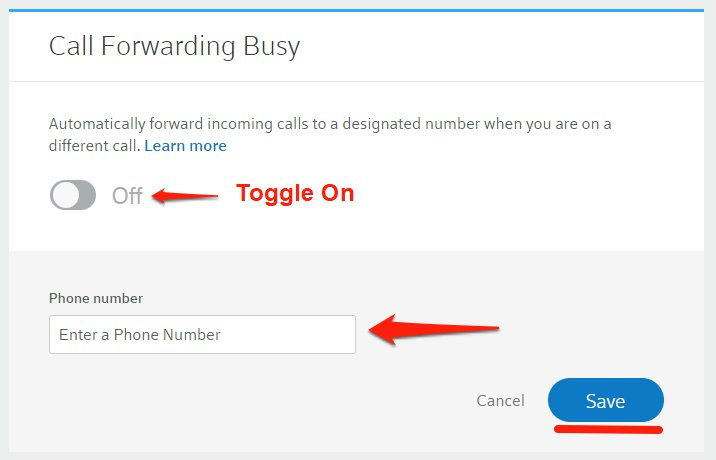 To forward calls only if your line is busy, use the Call Forwarding Busy section, and insert your Smith number in that box, then ensure it's toggled on and click Save.