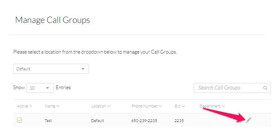 Hover over the name of the Call Group you want to forward, and click the Pencil icon.