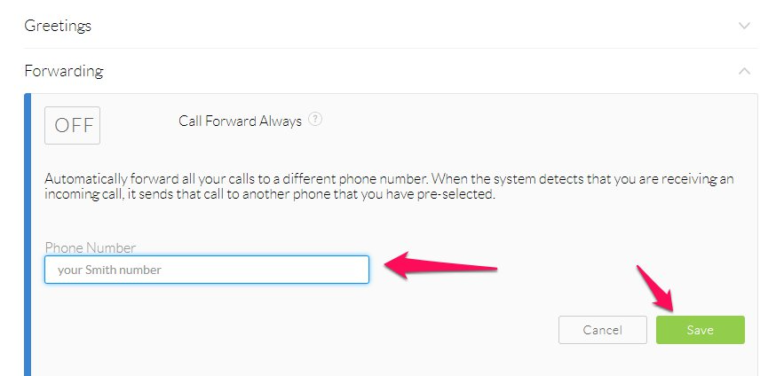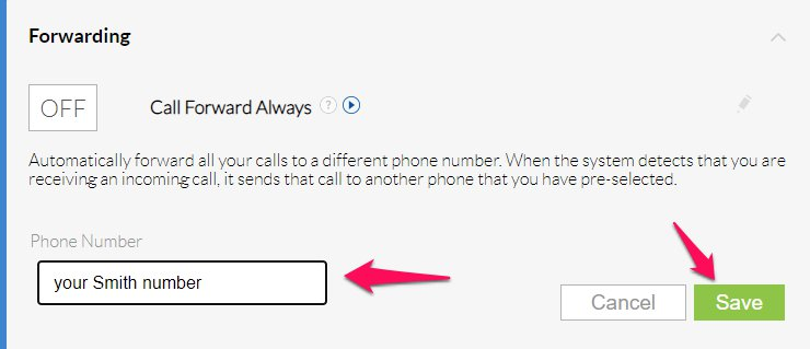 In the Phone Number box, enter your Smith to forward calls to, and click Save.