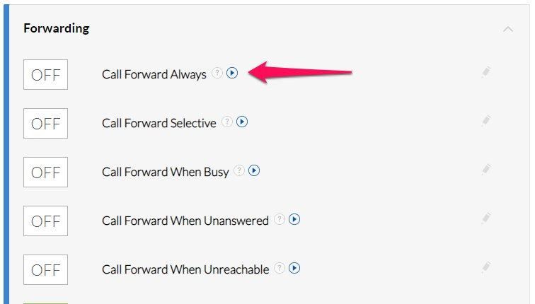 Scroll down to the Forwarding section. Click on Call Forward Always.