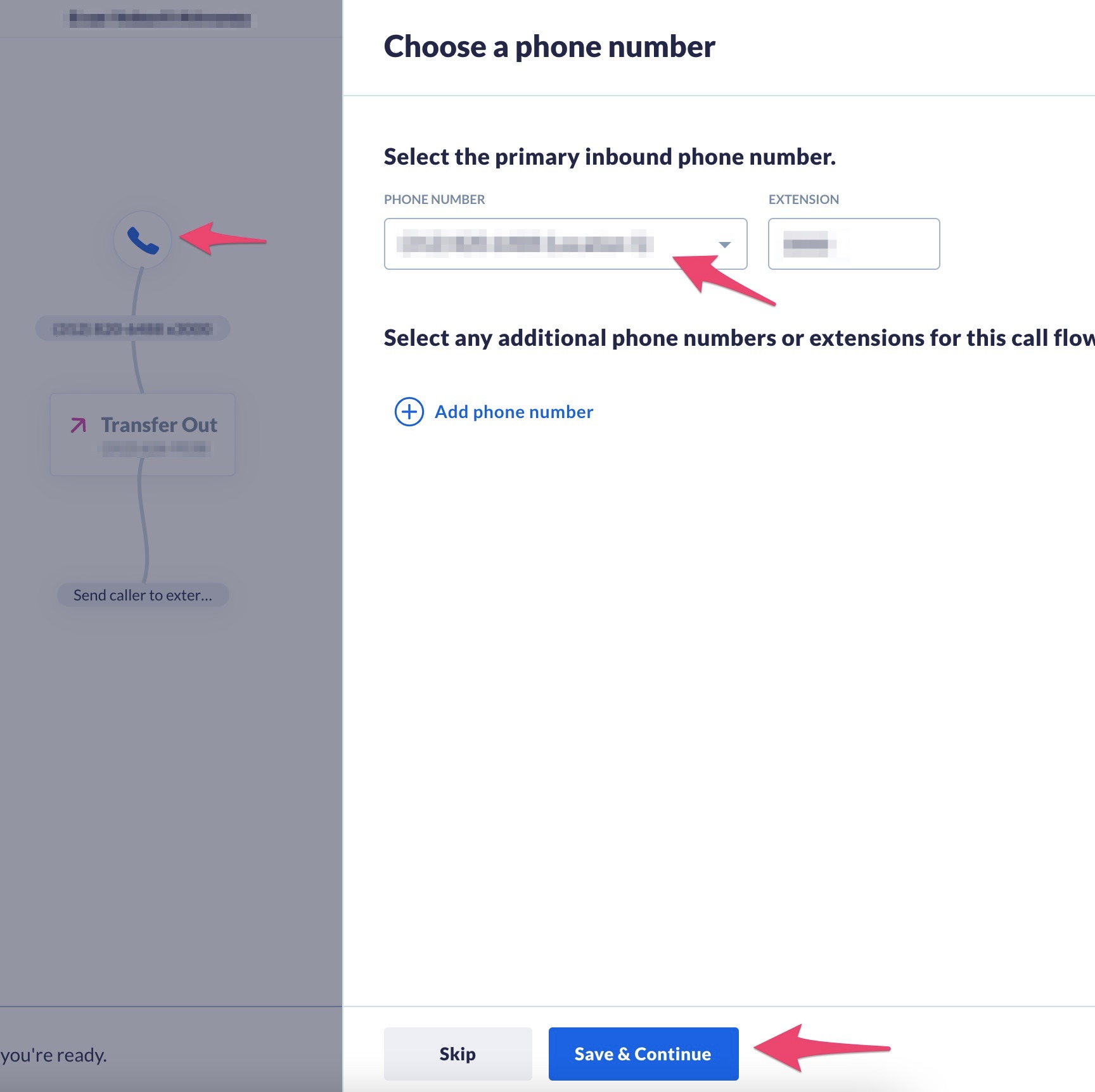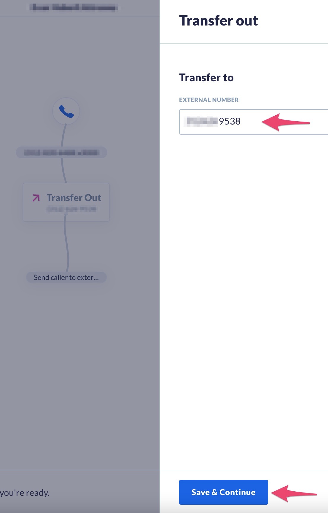 In the step that you want to forward to your Smith number, use a Transfer out node. Type in your Smith number, and click on the Save & Continue button.
