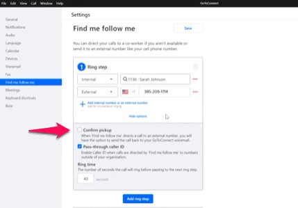 The following instructions will show you how to set up your call forwarding from GoToConnect to your Smith account: